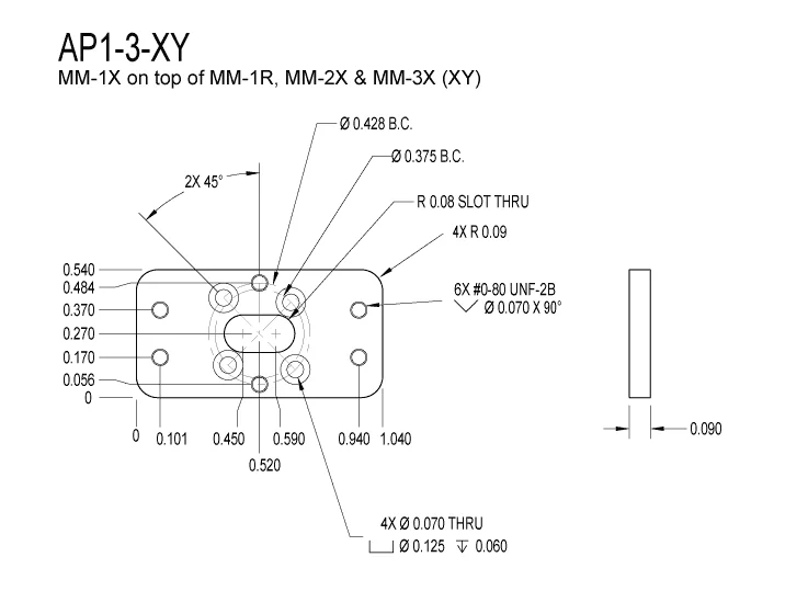 Contains two, 0-80 connecting screws utilizing two tap clearance holes in slider to connect two MM-1 stages into an XY configuration.