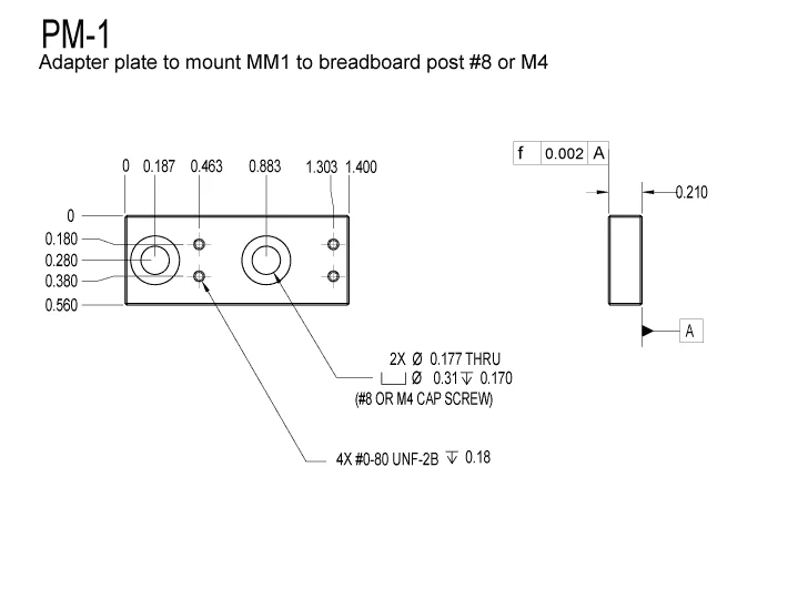 Adapter plate to mount MM-1 to breadboard post #8 or M4