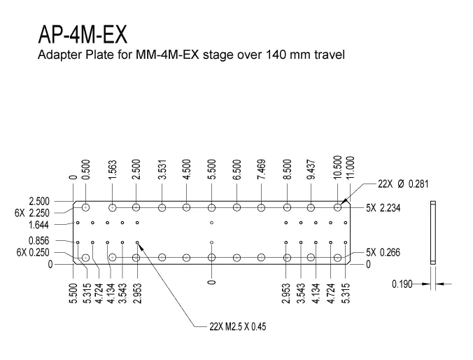Stage-to-optical bench adapter plate for -EX stage under 140 mm travel